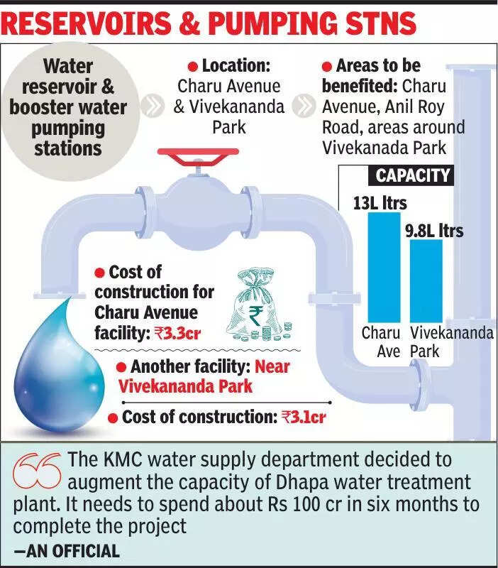 Kolkata: Mayor Firhad Hakim on Thursday inaugurated two water supply facilities in the Charu Avenue area and near Vivekananda Park on Southern Avenue. The facilities include two underground water reservoirs, which will also serve as capsule booster water pumping stations. These facilities will benefit thousands of residents in the city. One of the pumping stations was opened in the Charu Avenue area. The second facility was inaugurated on Southern Avenue. The water pumping station on Charu Avenue was built, keeping in mind thousands of residents, including those living in parts of Jhaldar Math, who were dependent on groundwater. The facility on Anil Roy Road near Vivekananda Park would provide water to thousands in the neighbourhood, explained a KMC official from the water supply department.The civic water department will build several other water pumping stations in south Kolkata, especially in Jadavpur and Tollygunge, to reduce the dependence on groundwater. The KMC, which has completed building more than 20 capsule booster pumping stations over the past two years, plans to build about 15 additional such water pumping stations in the next two years.Supply of potable water to the Tollygunge-Jadavpur zone and areas off EM Bypass will depend on the enhancement of the Dhapa water treatment facility, besides the construction of the Garia treatment plant.The KMC water supply department has decided to augment the capacity of the facility at Dhapa. For the same, the civic body is required to spend Rs 100 crore in about six months time to complete the project. The Dhapa water facility has a capacity of about 30 million gallons. “After the water treatment plant got operational in 2015, we decided to augment its capacity by 20 million gallons for providing water to additional neighbourhoods along EM Bypass and in the Tollygunge-Jadavpur zone. We have decided to augment the Dhapa water treatment plant capacity by about 20 million gallons. This was decided after a survey of areas along EM Bypass was done. We need to expand the infrastructure at the existing treatment plant for this,” said the KMC official.The civic body had also taken up the construction of another treatment plant near Dhalai Bridge area to cater to the needs of residents of Garia, Patuli, Baghajatin Ramgarh, some parts of Jadavpur, besides EM Bypass area. It will get the supply of water from Hooghly in Kidderpore. The water will then be supplied to pipelines along Tolly Nullah. The water facility will start functioning in about two years, said an official from the KMC.